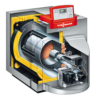 Dank der biferralen Verbundheizfläche aus Guß und Stahl wird die Kesselwassertemperatur gleitend der jeweiligen Außentemperatur angepasst.